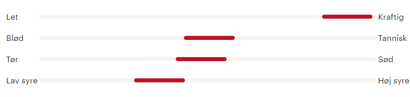 Smag: de søde og bløde tanniner gør det til en meget harmonisk vin, den alkoholholdige varme er velafbalanceret af strukturens elegance.