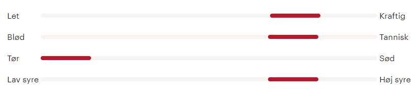 Smagsnote: Med en betydelig andel af Cabernet Franc er dette en parfumeret og elegant vin. Det har en seriøs kant af tanniner ud over saftige rødbærsmag. Finishen er fast og tør."