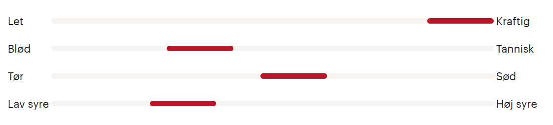 Smag: de elegante og fløjlsagtige tanniner gør det til en vin med fremragende struktur og bemærkelsesværdig vedholdenhed med god friskhed og drikkelighed.